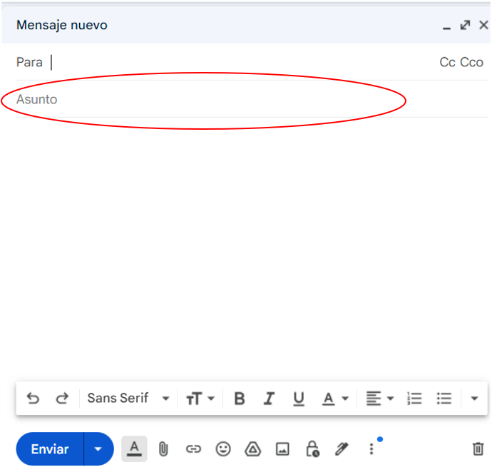 Este campo o apartado puede ser la idea o tema central del mensaje, de este modo te será más sencillo encontrar la información en el caso de que tengas acumulados muchos correos electrónicos.