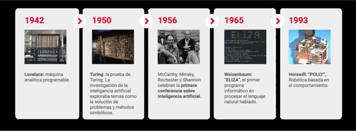 En 1956 tuvo lugar la Conferencia de Dartmouth (Estados Unidos), un evento que estableció la inteligencia artificial como "la ciencia e ingenio de hacer máquinas inteligentes, especialmente programas para realizar cálculos inteligentes".