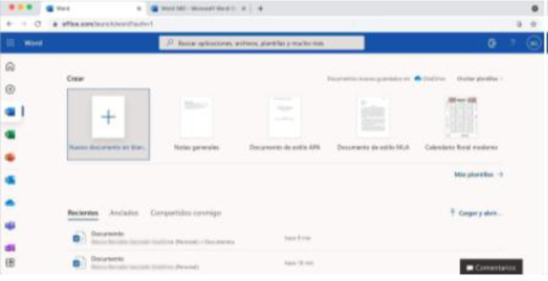 Una vez en la pantalla de Word, puedes crear un documento nuevo seleccionando la opción "Nuevo documento en blanco".