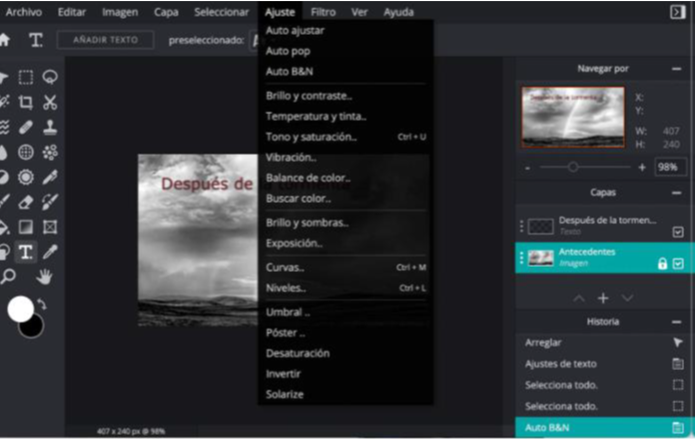 Se pueden realizar ajustes sobre las imágenes.
