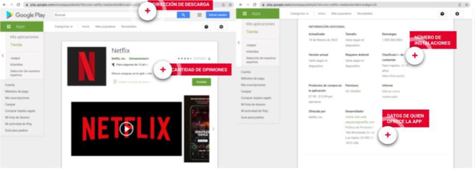 Las aplicaciones populares, como pueden ser las redes sociales, las de banca online o los servicios de contenidos audiovisuales, tienen un alto número de instalaciones. Si la aplicación parece muy conocida pero el número de instalaciones es bajo, no resulta fiable.
